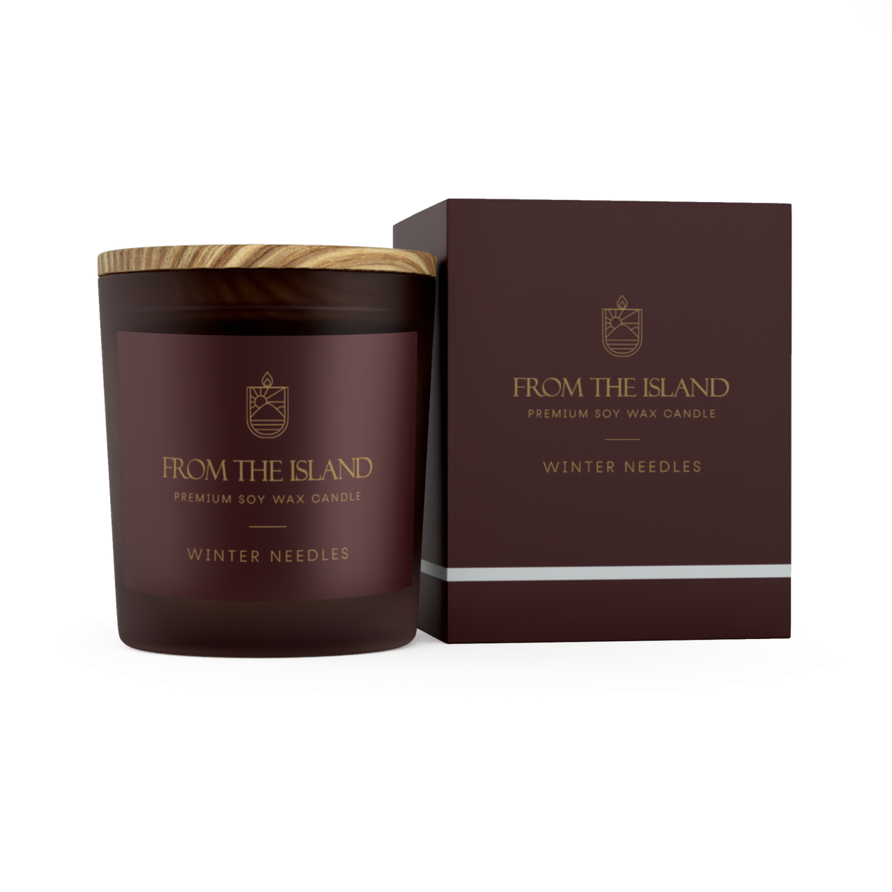 Ароматична свічка українського виробника From the Island "Зимові Голочки" подарує відчуття свіжого повітря та хвойного лісу, перенесе у справжню зимову казку